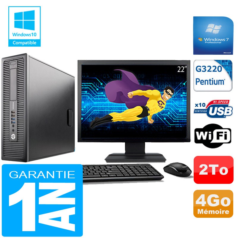 PC HP EliteDesk 800 G1 SFF Intel G3220 4 Go Disque 2 To Wifi W7 Ecran 22"