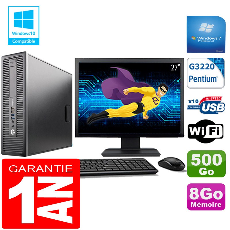 PC HP EliteDesk 800 G1 SFF Intel G3220 8Go Disque 500 Go Wifi W7 Ecran 27"