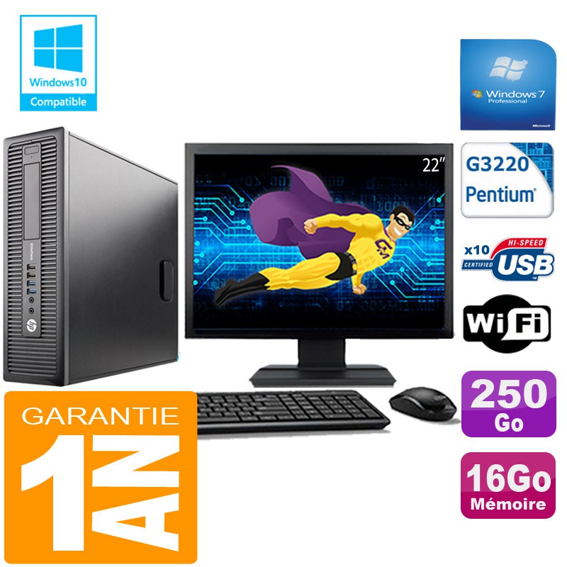 PC HP EliteDesk 800 G1 SFF Intel G3220 16Go Disque 250 Go Wifi W7 Ecran 22"