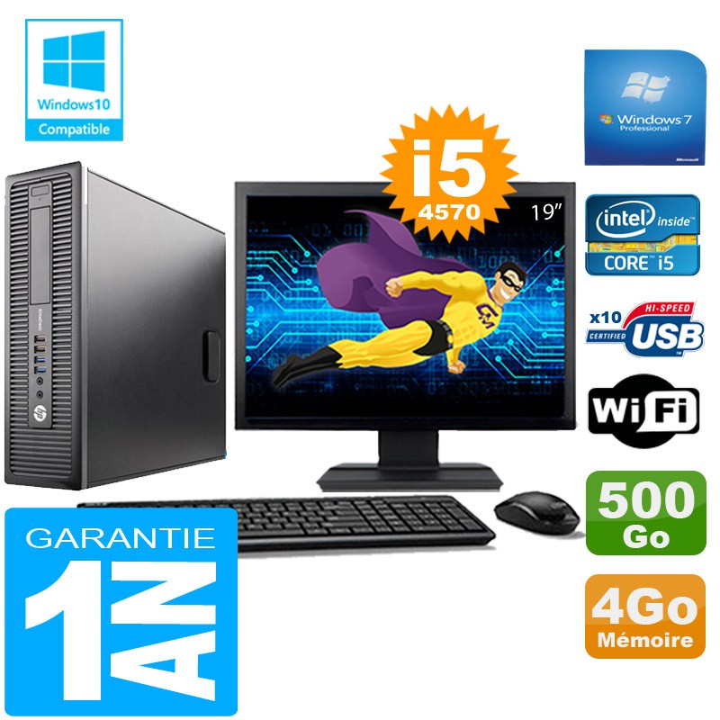 PC HP EliteDesk 800 G1 SFF Core I5-4570 4Go Disque 500 Go Wifi W7 Ecran 19"