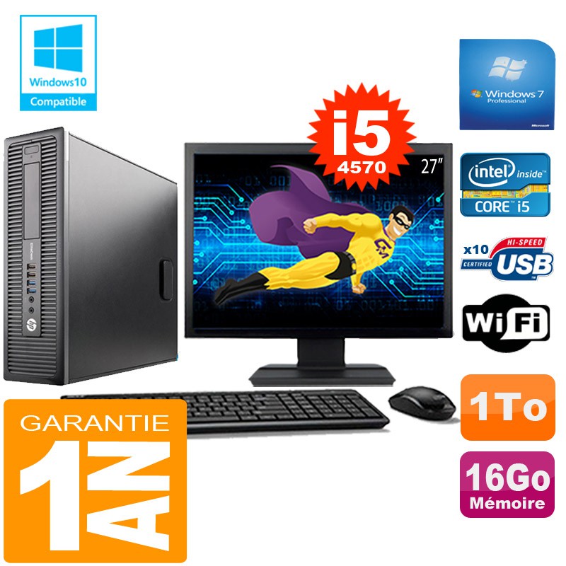 PC HP EliteDesk 800 G1 SFF Core I5-4570 16Go Disque 1 To Wifi W7 Ecran 27"