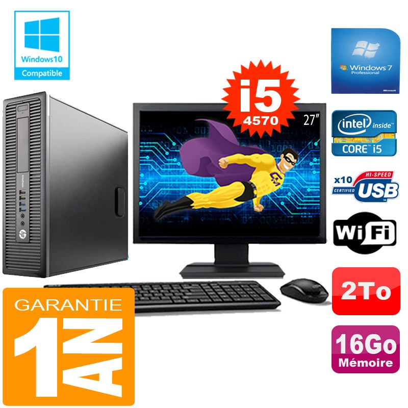 PC HP EliteDesk 800 G1 SFF Core I5-4570 16Go Disque 2 To Wifi W7 Ecran 27"
