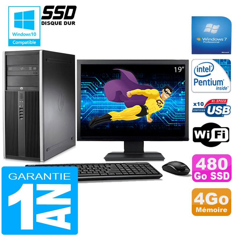 PC Tour HP Compaq 8200 Intel G630 Ram 4Go Disque 480 Go SSD Wifi W7 Ecran 19"