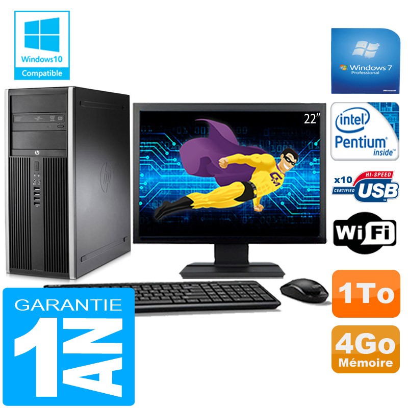 PC Tour HP Compaq 8200 Intel G630 Ram 4Go Disque 1 To Wifi W7 Ecran 22"