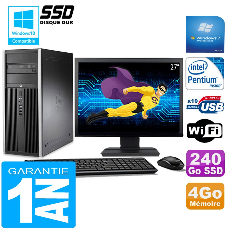 PC Tour HP Compaq 8200 Intel G630 Ram 4Go Disque 240 Go SSD Wifi W7 Ecran 27"