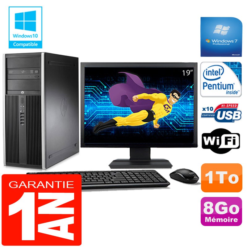 PC Tour HP Compaq Elite 8200 -Intel Pentium G630 2,7Ghz (3 Mo de cache) - 8Go DDR3 - Disque Dur 1To - Graveur DVD - Clé WIFI USB - Windows 7 Pro - Pack Clavier + Souris + Ecran 19" ( Marque et modèle selon arrivages) - Garantie = 1 an.