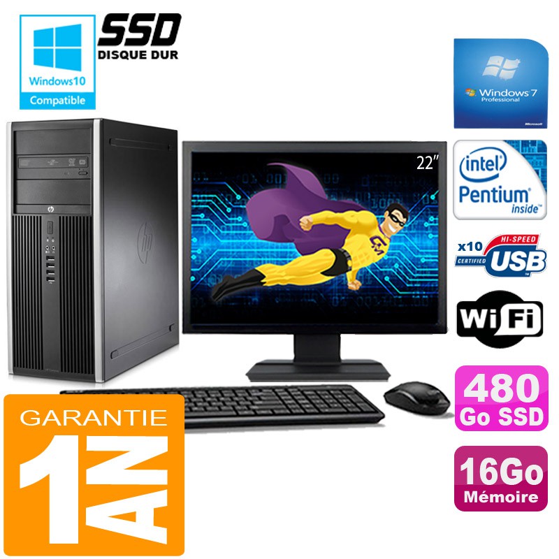 PC Tour HP Compaq 8200 Intel G630 Ram 16Go Disque 480 Go SSD Wifi W7 Ecran 22"