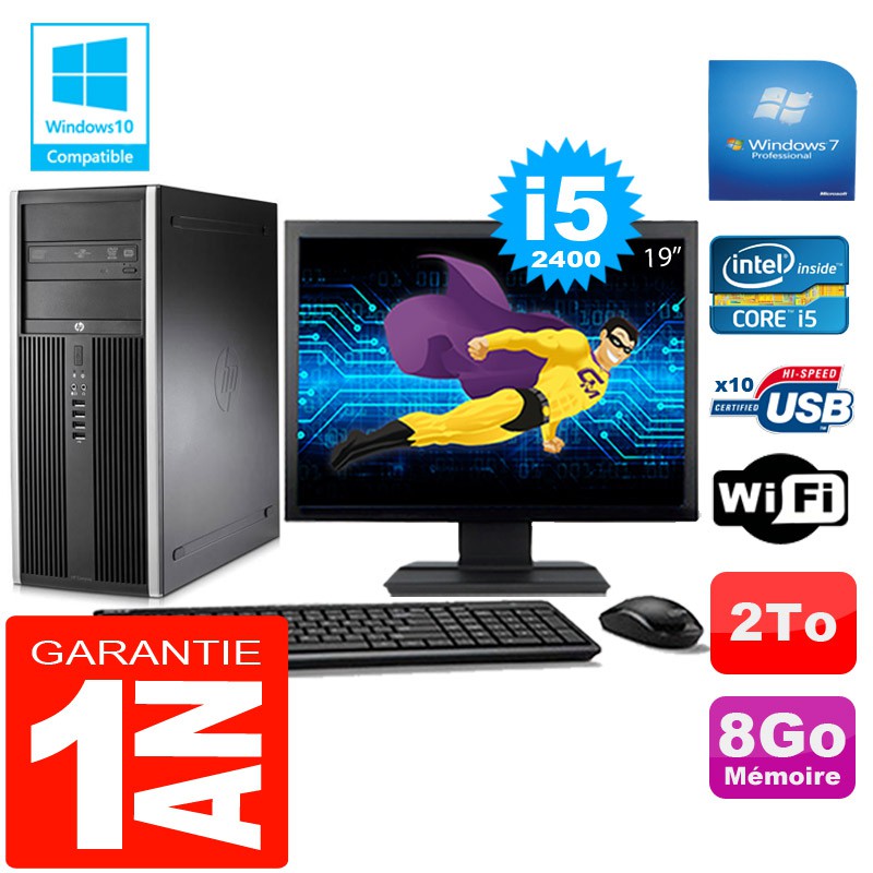PC Tour HP Compaq 8200 Core I5-2400 Ram 8Go Disque 2 To Wifi W7 Ecran 19"
