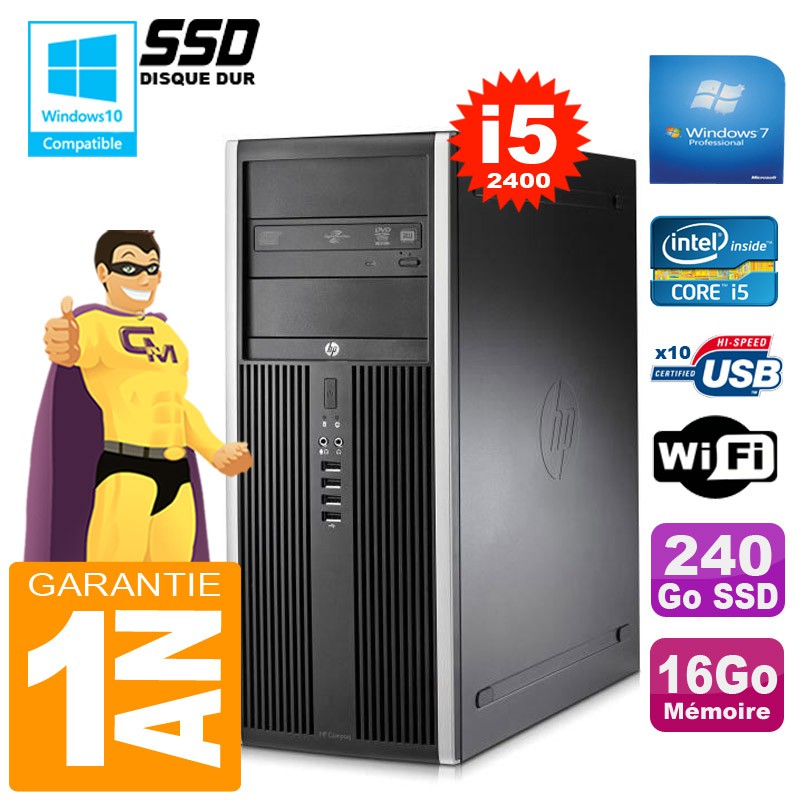 PC Tour HP Compaq 8200 Core I5-2400 Ram 16Go Disque 240Go SSD Graveur DVD Wifi W7