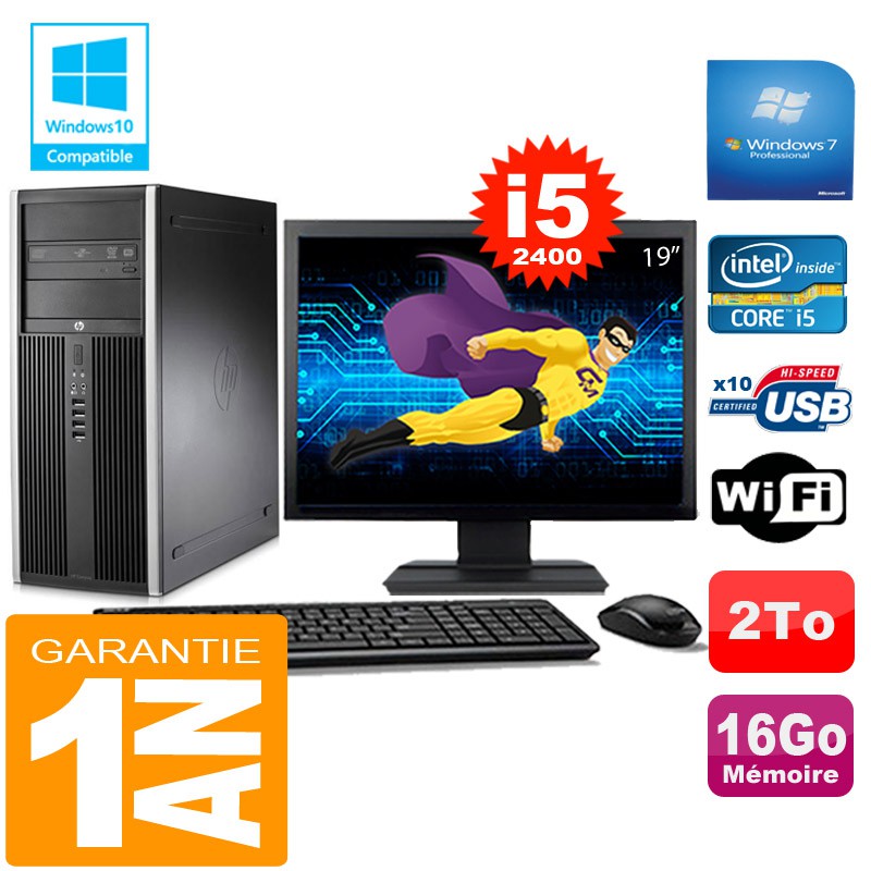 PC Tour HP Compaq 8200 Core I5-2400 Ram 16Go Disque 2 To Wifi W7 Ecran 19"