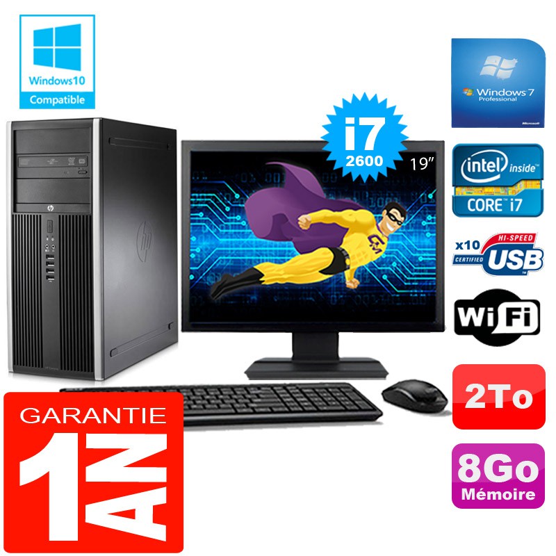 PC Tour HP Compaq 8200 Core I7-2600 Ram 8Go Disque 2 To Wifi W7 Ecran 19"