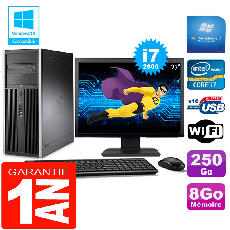 PC Tour HP Compaq 8200 Core I7-2600 Ram 8Go Disque 250 Go Wifi W7 Ecran 27"