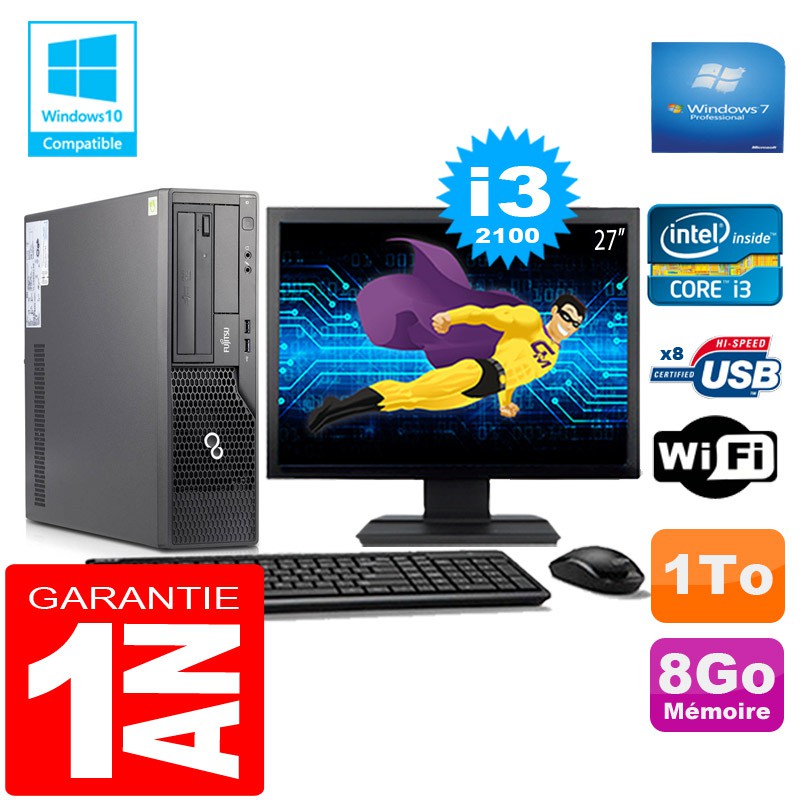 PC Fujitsu Esprimo E500 E85+ SFF Core I3-2100 8Go Disque 1 To Wifi W7 Ecran 27"
