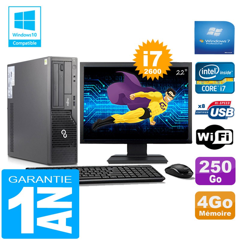 PC Fujitsu Esprimo E500 E85+ SFF I7-2600 RAM 4Go Disque 250Go Wifi W7 Ecran 22"