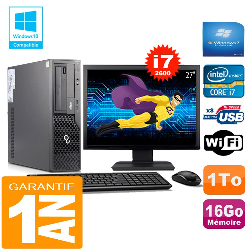 PC Fujitsu Esprimo E500 E85+ SFF Core I7-2600 16Go Disque 1 To Wifi W7 Ecran 27"