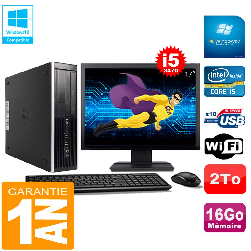 PC HP Compaq Pro 6300 SFF I5-3470 16Go 2To Graveur DVD Wifi W7 Ecran 17"