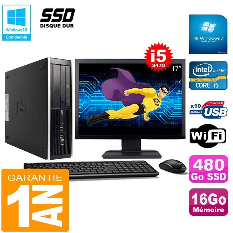 PC HP Compaq Pro 6300 SFF I5-3470 16Go 480Go SSD Graveur DVD Wifi W7 Ecran 17"