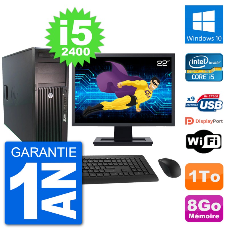 PC Tour HP Z210 Ecran 22" Intel i5-2400 RAM 8Go Disque Dur 1To Windows 10 Wifi