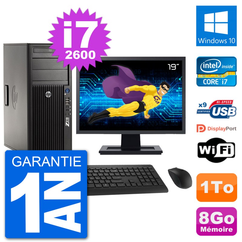 PC Tour HP Z210 Ecran 19" Intel i7-2600 RAM 8Go Disque Dur 1To Windows 10 Wifi
