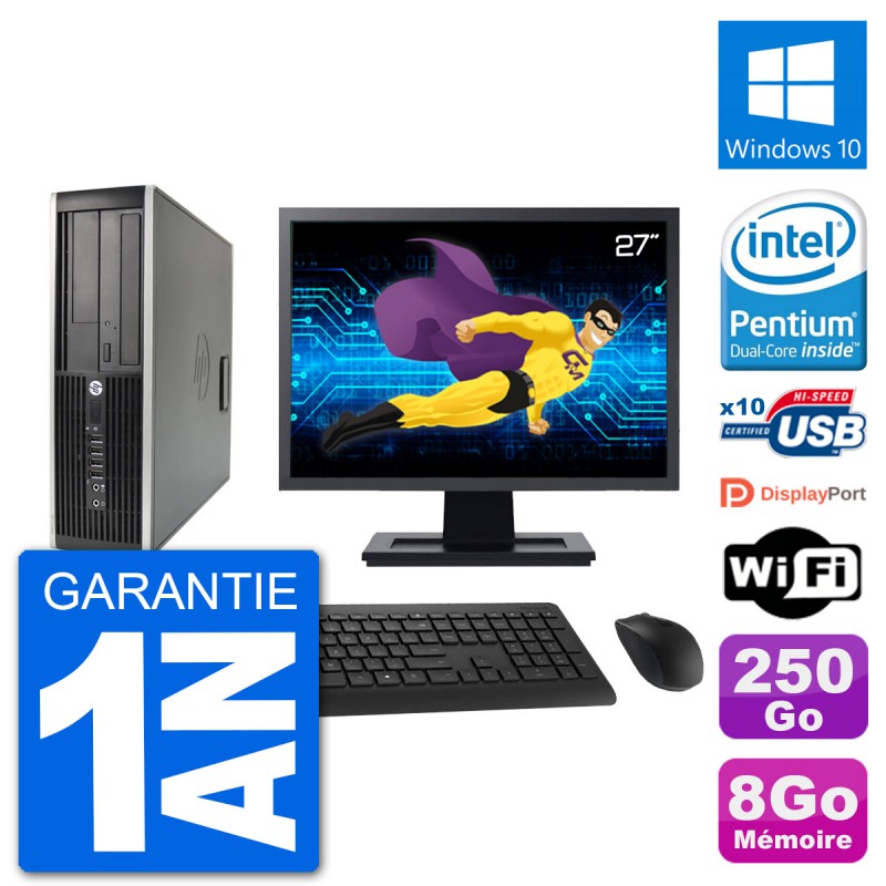 PC HP Compaq 6200 Pro SFF (Slim) - Intel Pentium Dual-Core G630 2.7 Ghz (3 Mo) - 8 Go DDR3 - Disque Dur 3,5" 250 Go - Graveur DVD - Clef Wifi USB - Windows 10 - Livré avec Ecran 27" + clavier + souris (Marques et modèles variables) - Garantie 1 an.