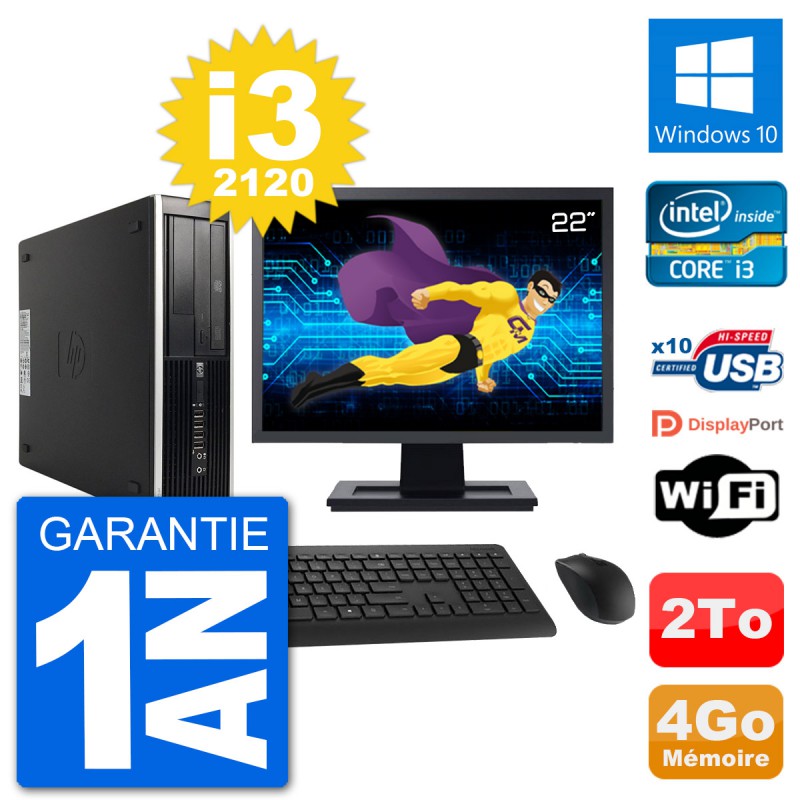 PC HP Compaq 6200 Pro SFF Ecran 22" i3-2120 RAM 4Go Disque 2To Windows 10 Wifi