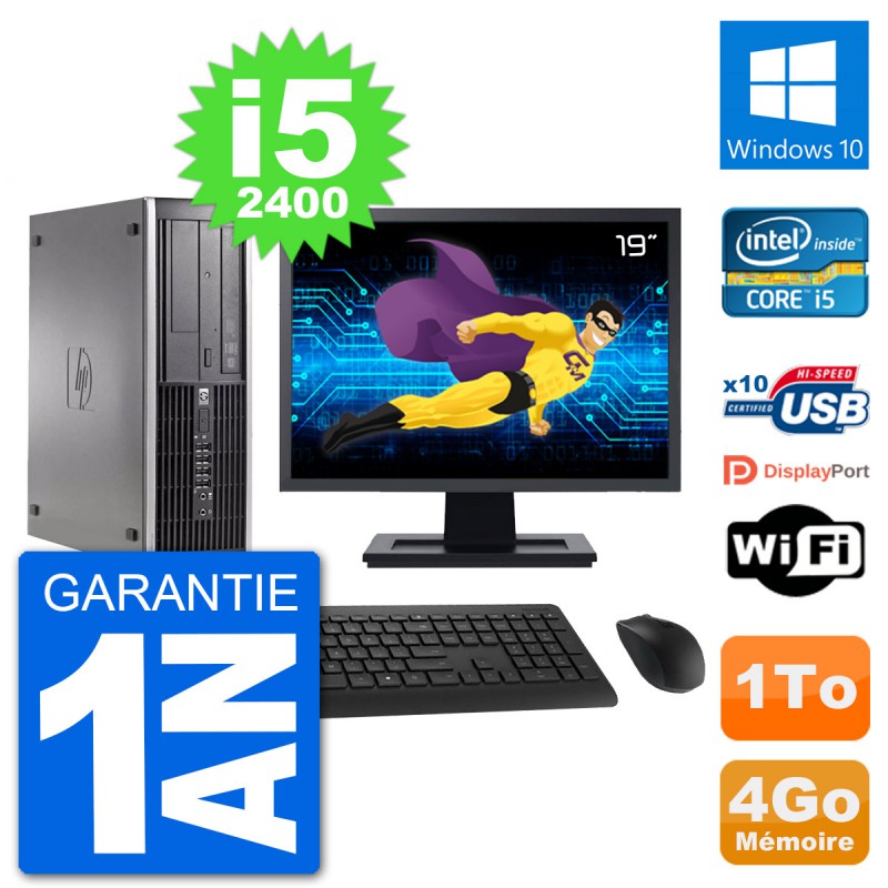 PC HP Compaq 6200 Pro SFF Ecran 19" i5-2400 RAM 4Go Disque 1To Windows 10 Wifi