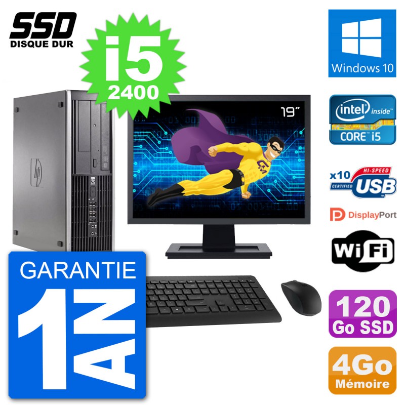 PC HP Compaq 6200 Pro SFF Ecran 19" i5-2400 RAM 4Go SSD 120Go Windows 10 Wifi