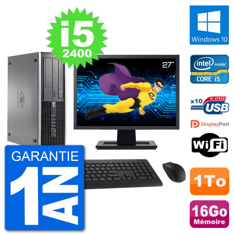 PC HP Compaq 6200 Pro SFF Ecran 27" i5-2400 RAM 16Go Disque 1To Windows 10 Wifi