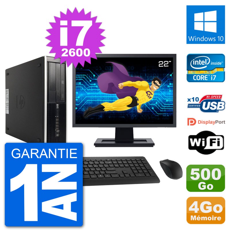 PC HP Compaq 6200 Pro SFF (Slim) - Intel Core i7-2600 3.4 Ghz (8 Mo) - 4 Go DDR3 - Disque Dur 3,5" 500 Go - Graveur DVD - Clef Wifi USB - Windows 10 - Livré avec Ecran 22" + clavier + souris (Marques et modèles variables) - Garantie 1 an.