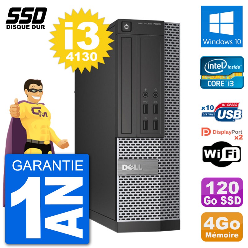 PC Dell OptiPlex 7020 SFF Intel i3-4130 RAM 4Go SSD 120Go Windows 10 Wifi
