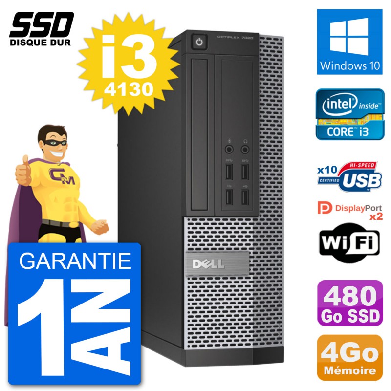 PC Dell OptiPlex 7020 SFF Intel i3-4130 RAM 4Go SSD 480Go Windows 10 Wifi