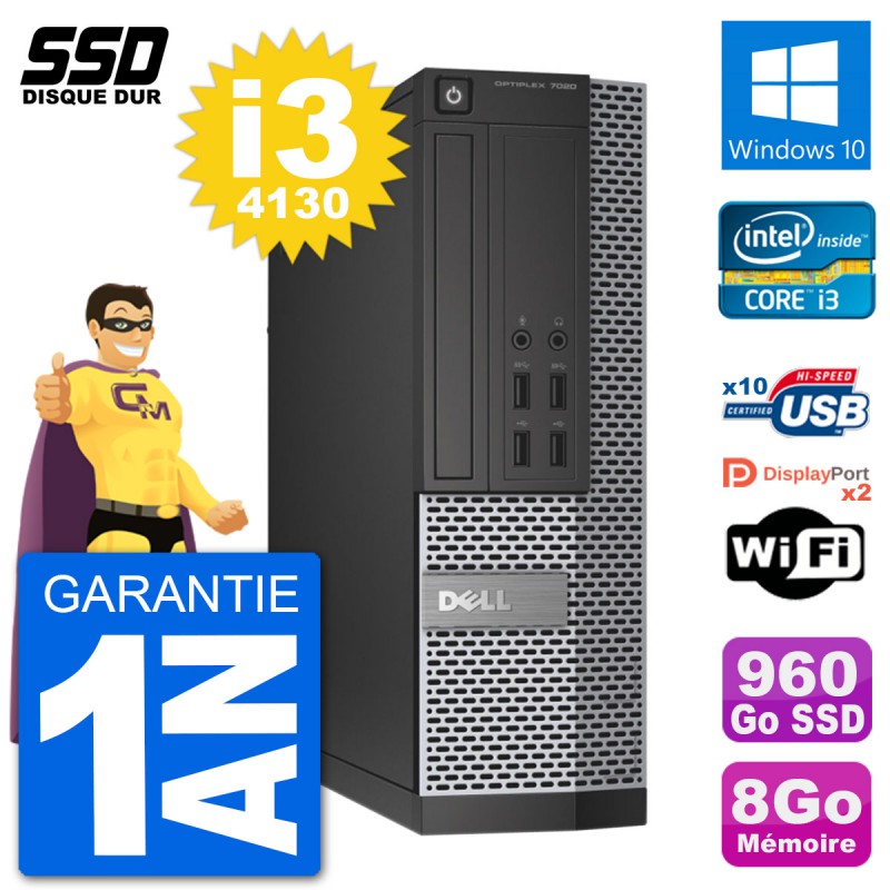 PC Dell OptiPlex 7020 SFF Intel i3-4130 RAM 8Go SSD 960Go Windows 10 Wifi