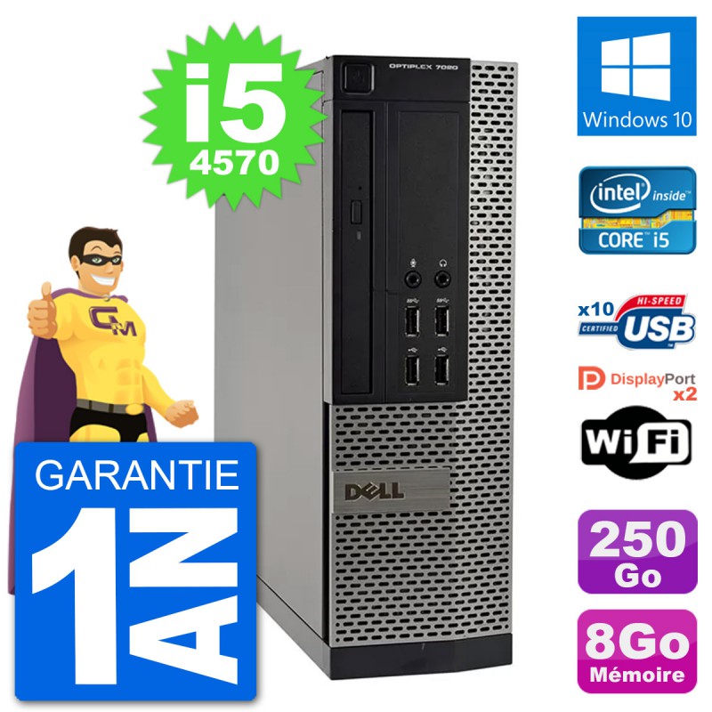 PC Dell OptiPlex 7020 SFF Intel i5-4570 RAM 8Go Disque Dur 250Go Windows 10 Wifi