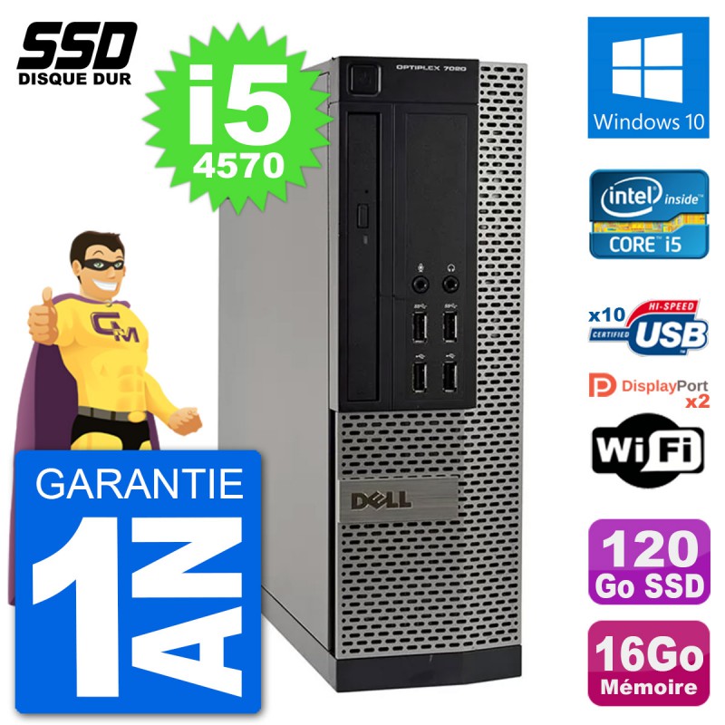 PC Dell OptiPlex 7020 SFF Intel i5-4570 RAM 16Go SSD 120Go Windows 10 Wifi