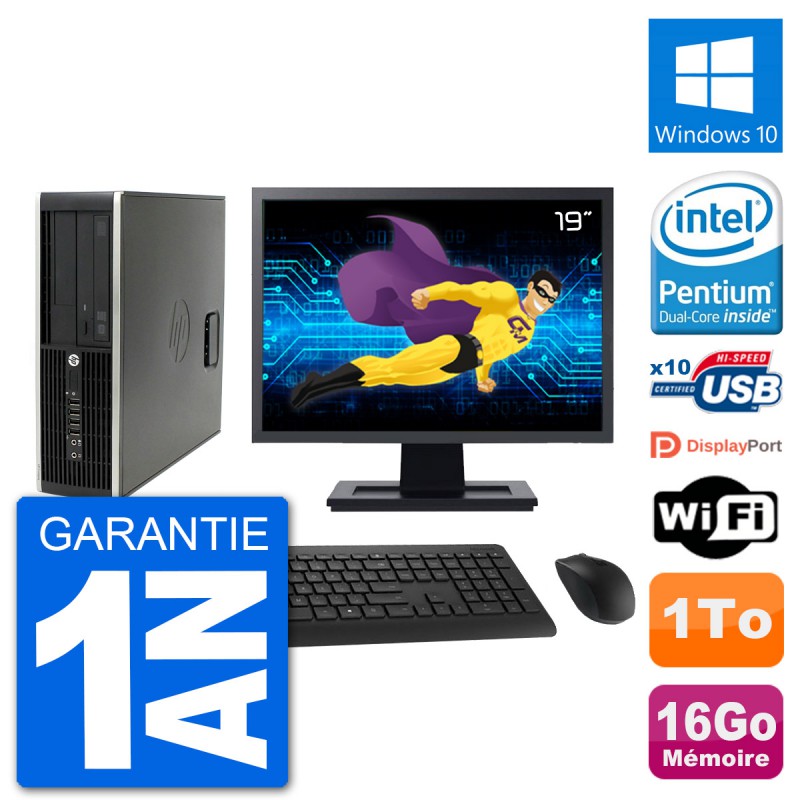 PC HP Compaq Pro 6300 SFF Ecran 19" G630 RAM 16Go Disque Dur 1To Windows 10 Wifi