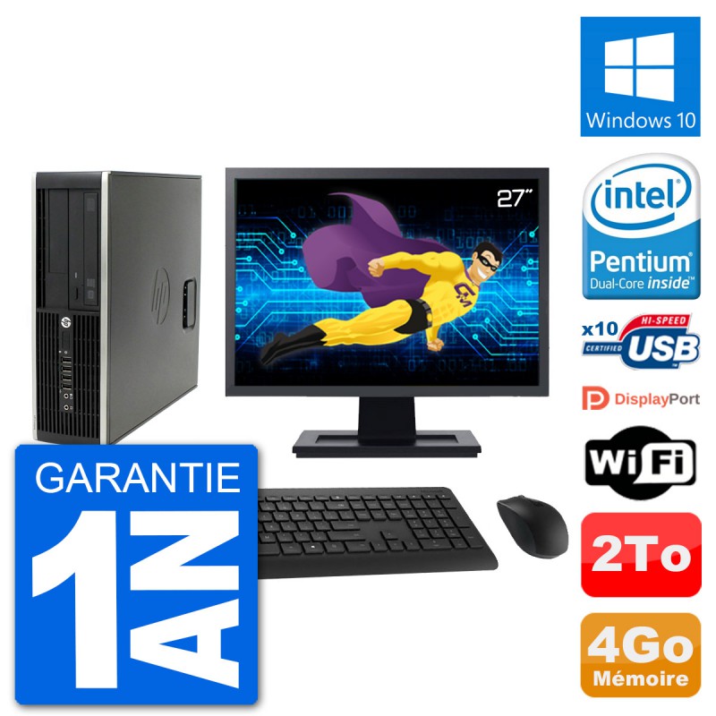 PC HP Compaq Pro 6300 SFF (Slim) - Intel Pentium Dual-Core G630 2.7 Ghz (3 Mo) - 4 Go DDR3 - Disque Dur 3,5" 2 To - Graveur DVD - Clef Wifi USB - Windows 10 - Livré avec Ecran 27" + clavier + souris (Marques et modèles variables) - Garantie 1 an.