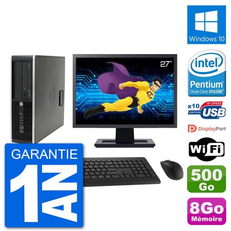 PC HP Compaq Pro 6300 SFF (Slim) - Intel Pentium Dual-Core G630 2.7 Ghz (3 Mo) - 8 Go DDR3 - Disque Dur 3,5" 500 Go - Graveur DVD - Clef Wifi USB - Windows 10 - Livré avec Ecran 27" + clavier + souris (Marques et modèles variables) - Garantie 1 an.
