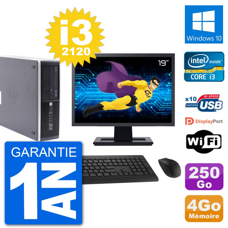 PC HP Compaq Pro 6300 SFF Ecran 19" i3-2120 RAM 4Go Disque 250Go Windows 10 Wifi