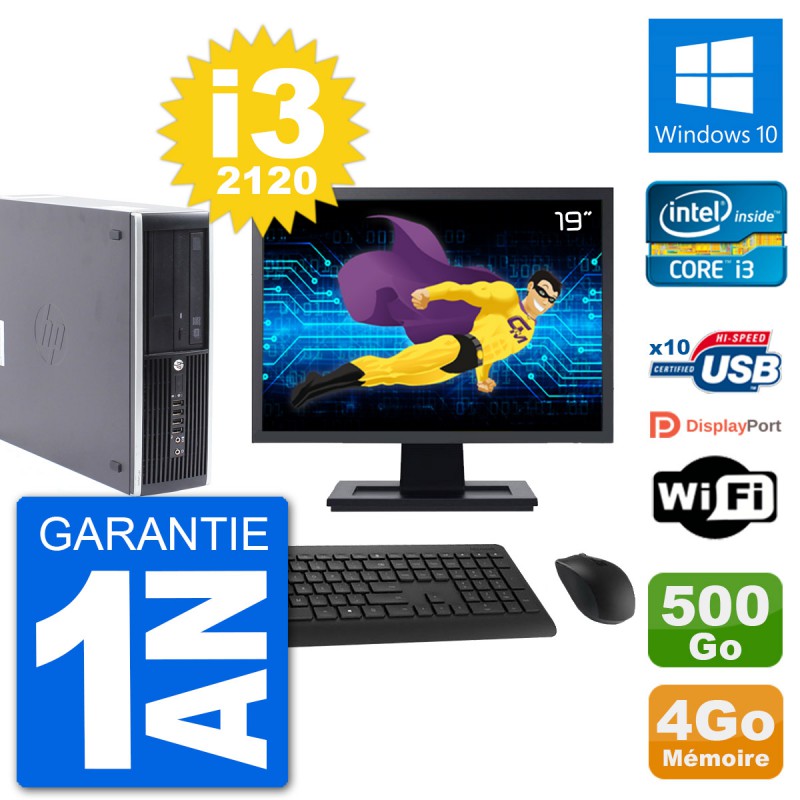 PC HP Compaq Pro 6300 SFF Ecran 19" i3-2120 RAM 4Go Disque 500Go Windows 10 Wifi