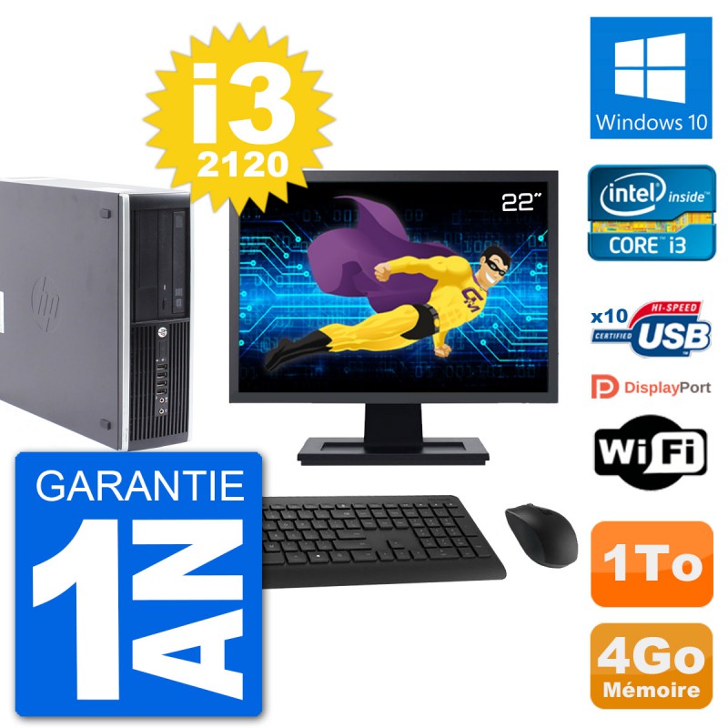 PC HP Compaq Pro 6300 SFF Ecran 22" i3-2120 RAM 4Go Disque 1To Windows 10 Wifi