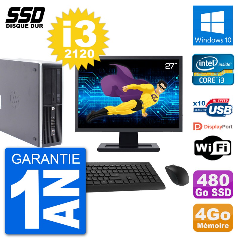 PC HP Compaq Pro 6300 SFF Ecran 27" i3-2120 RAM 4Go SSD 480Go Windows 10 Wifi