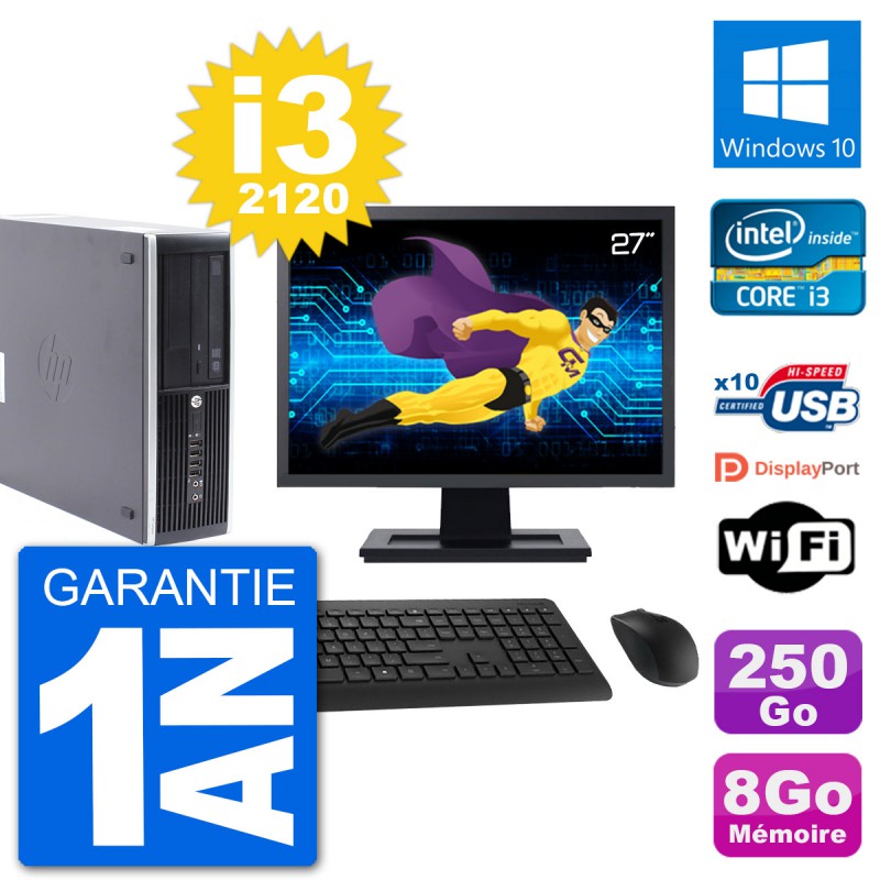 PC HP Compaq Pro 6300 SFF Ecran 27" i3-2120 RAM 8Go Disque 250Go Windows 10 Wifi