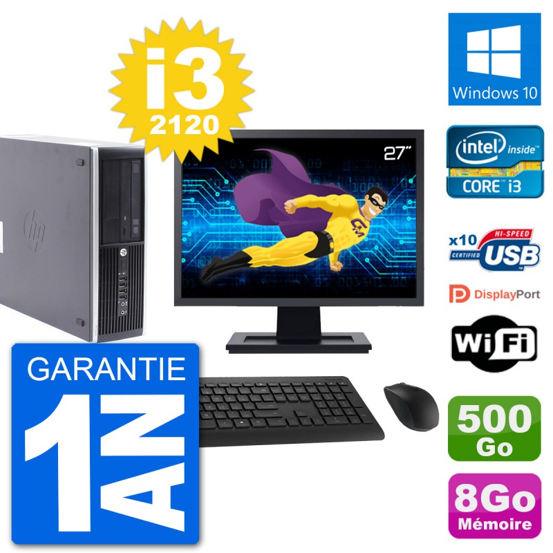 PC HP Compaq Pro 6300 SFF Ecran 27" i3-2120 RAM 8Go Disque 500Go Windows 10 Wifi