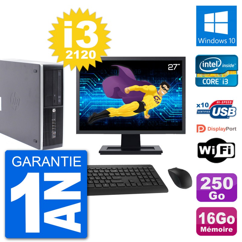 PC HP Compaq Pro 6300 SFF Ecran 27" Intel i3-2120 RAM 16Go 250Go Windows 10 Wifi