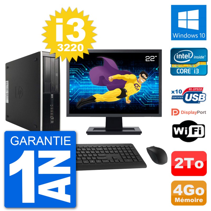 PC HP Compaq Pro 6300 SFF Ecran 22" i3-3220 RAM 4Go Disque 2To Windows 10 Wifi