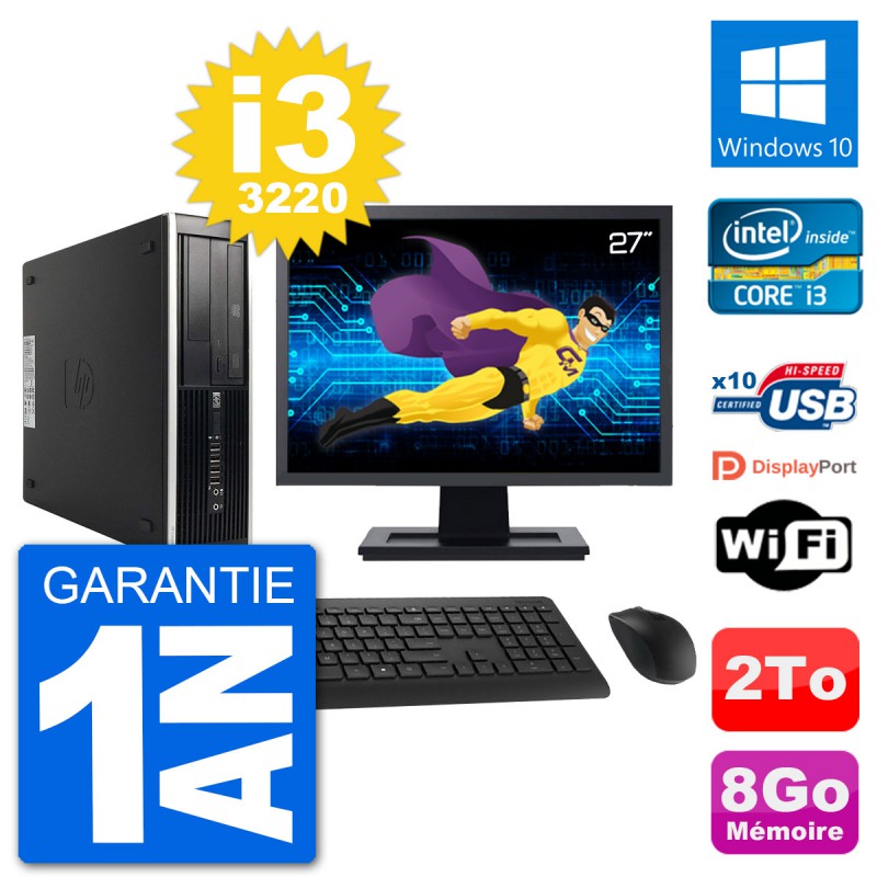 PC HP Compaq Pro 6300 SFF Ecran 27" i3-3220 RAM 8Go Disque 2To Windows 10 Wifi