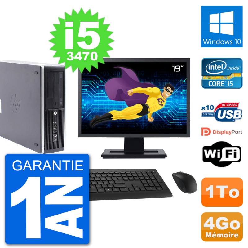 PC HP Compaq Pro 6300 SFF Ecran 19" i5-3470 RAM 4Go Disque 1To Windows 10 Wifi