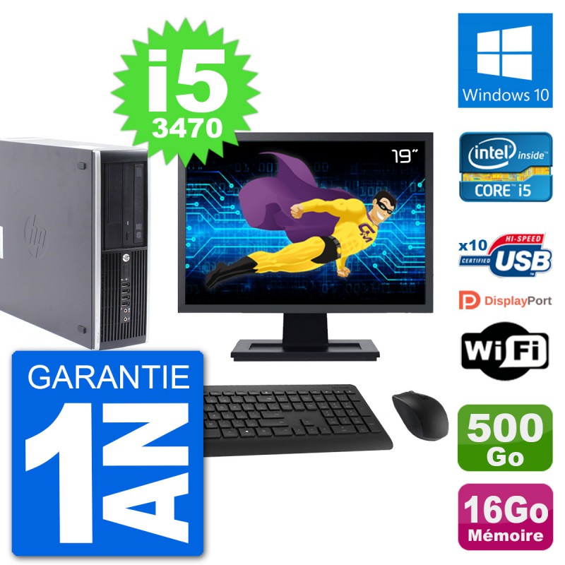 PC HP Compaq Pro 6300 SFF Ecran 19" Intel i5-3470 RAM 16Go 500Go Windows 10 Wifi