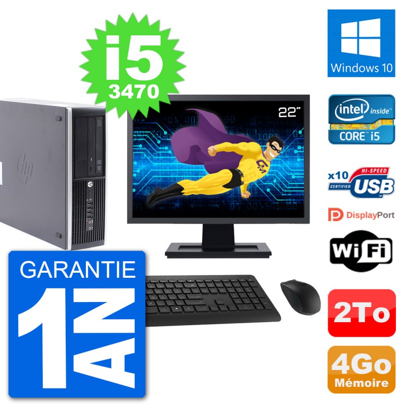 PC HP Compaq Pro 6300 SFF Ecran 22" i5-3470 RAM 4Go Disque 2To Windows 10 Wifi