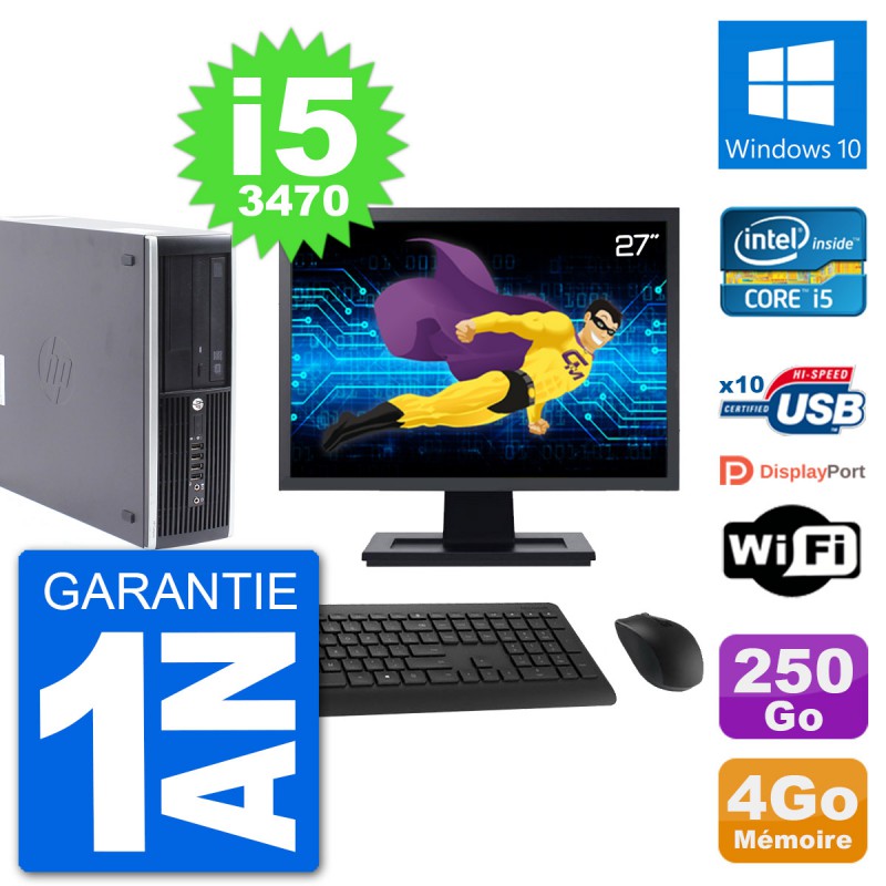 PC HP Compaq Pro 6300 SFF Ecran 27" i5-3470 RAM 4Go Disque 250Go Windows 10 Wifi